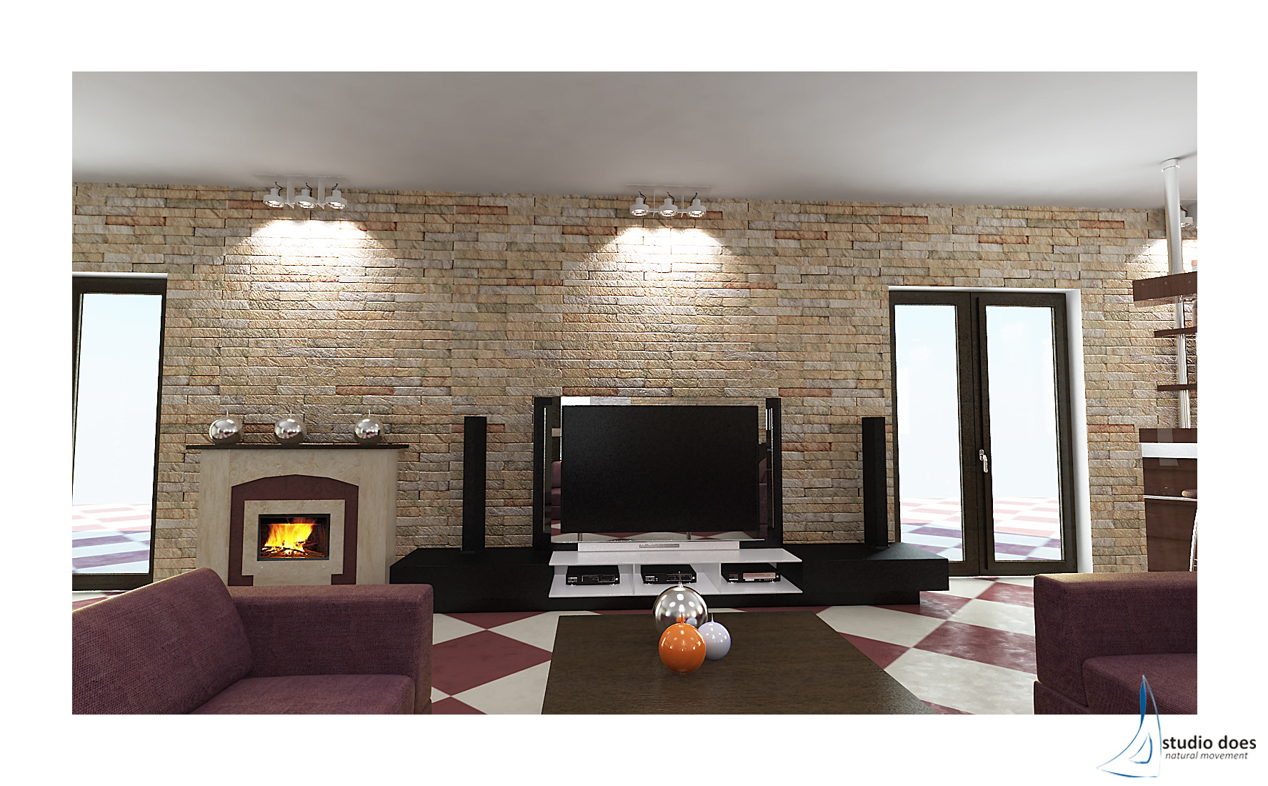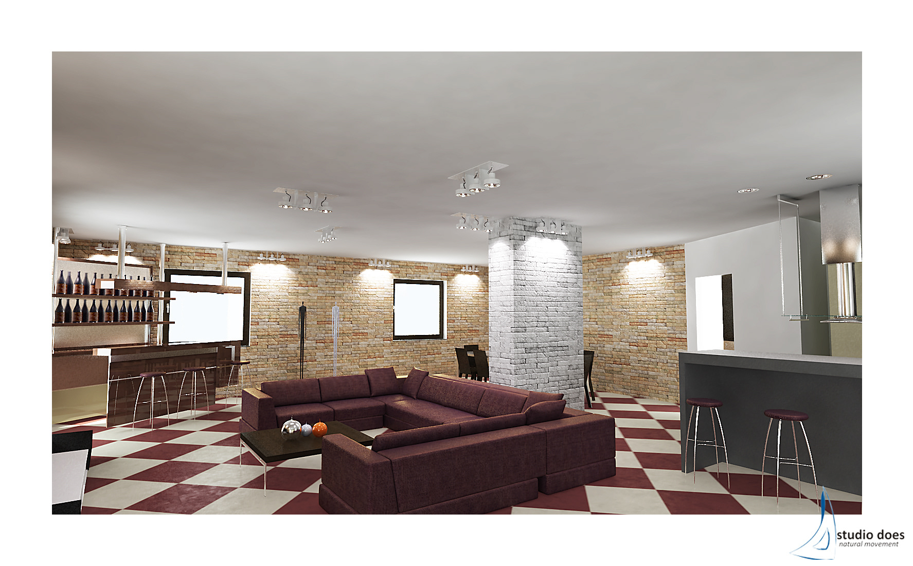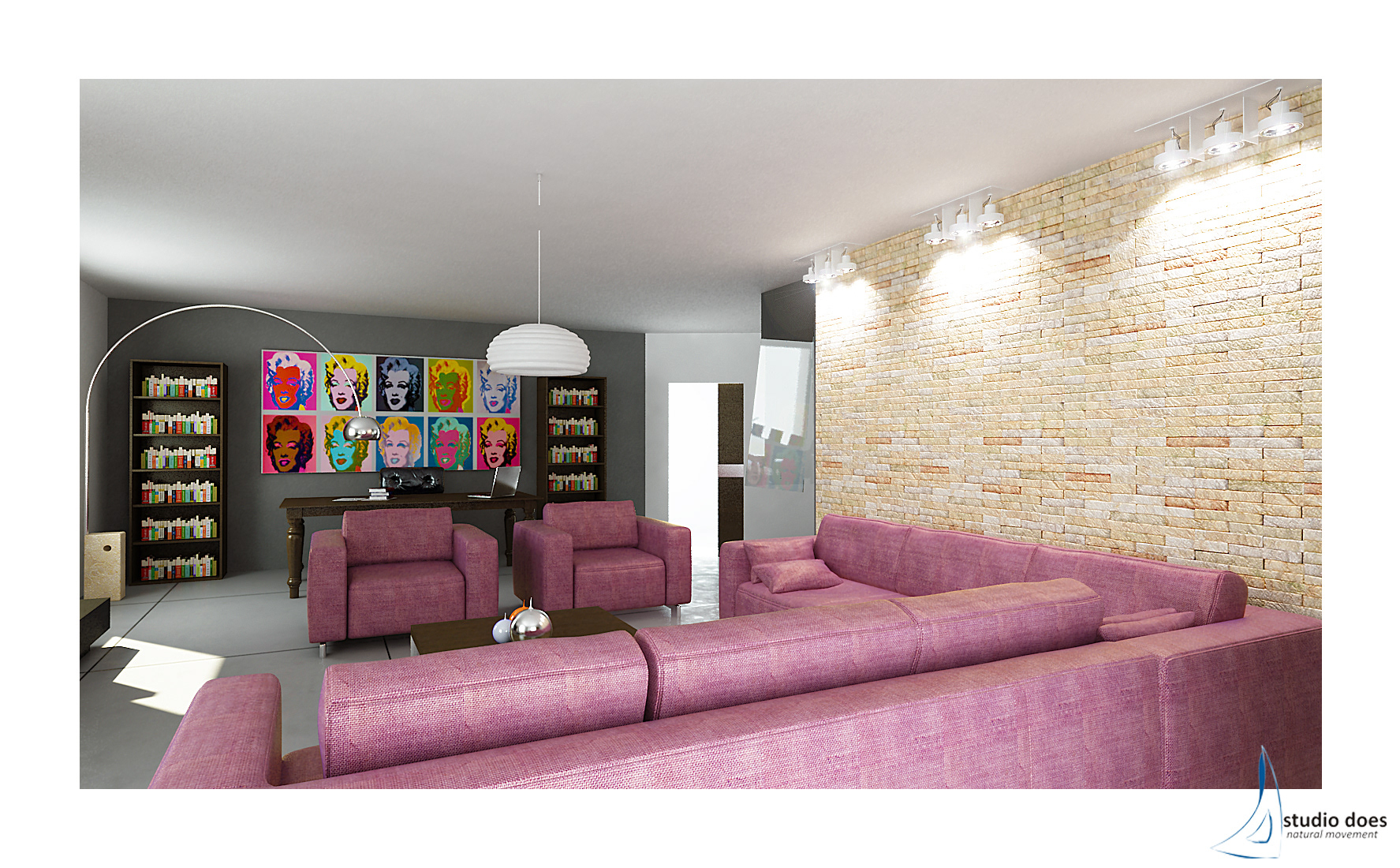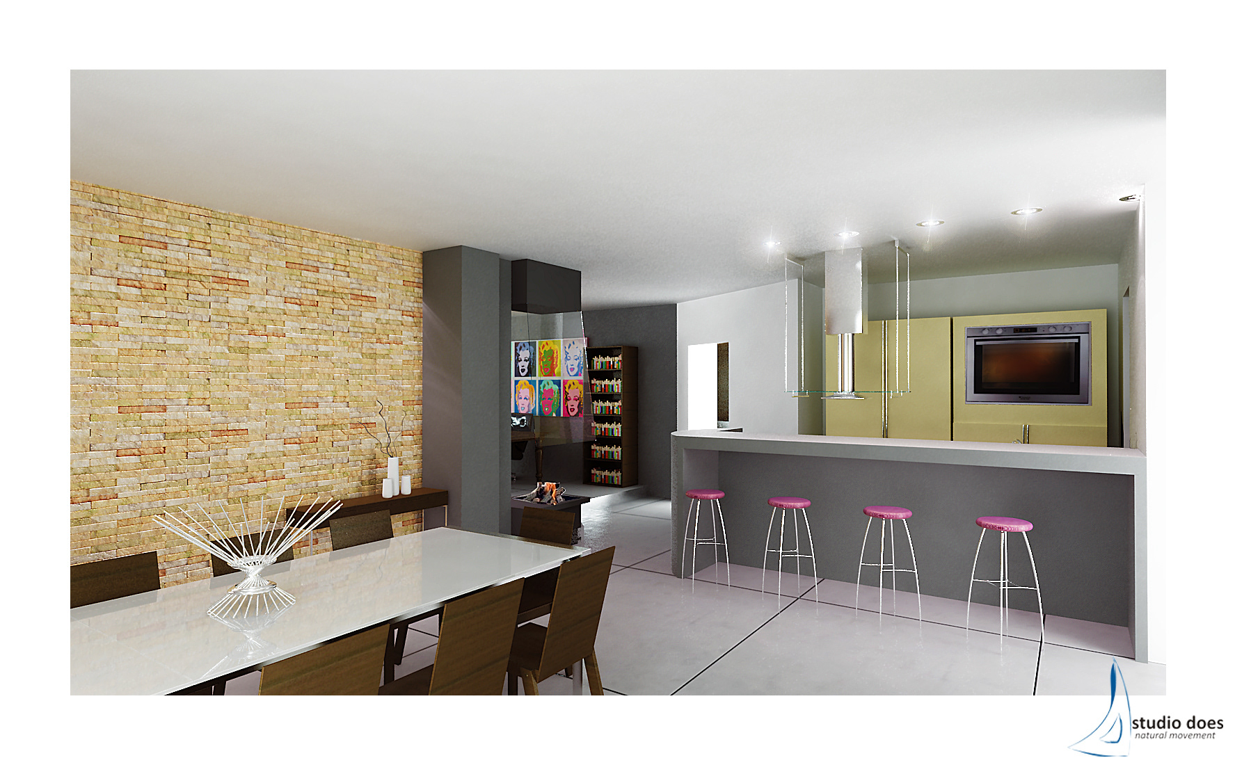 Progettazione ambiente Living e cucina per Studio Does